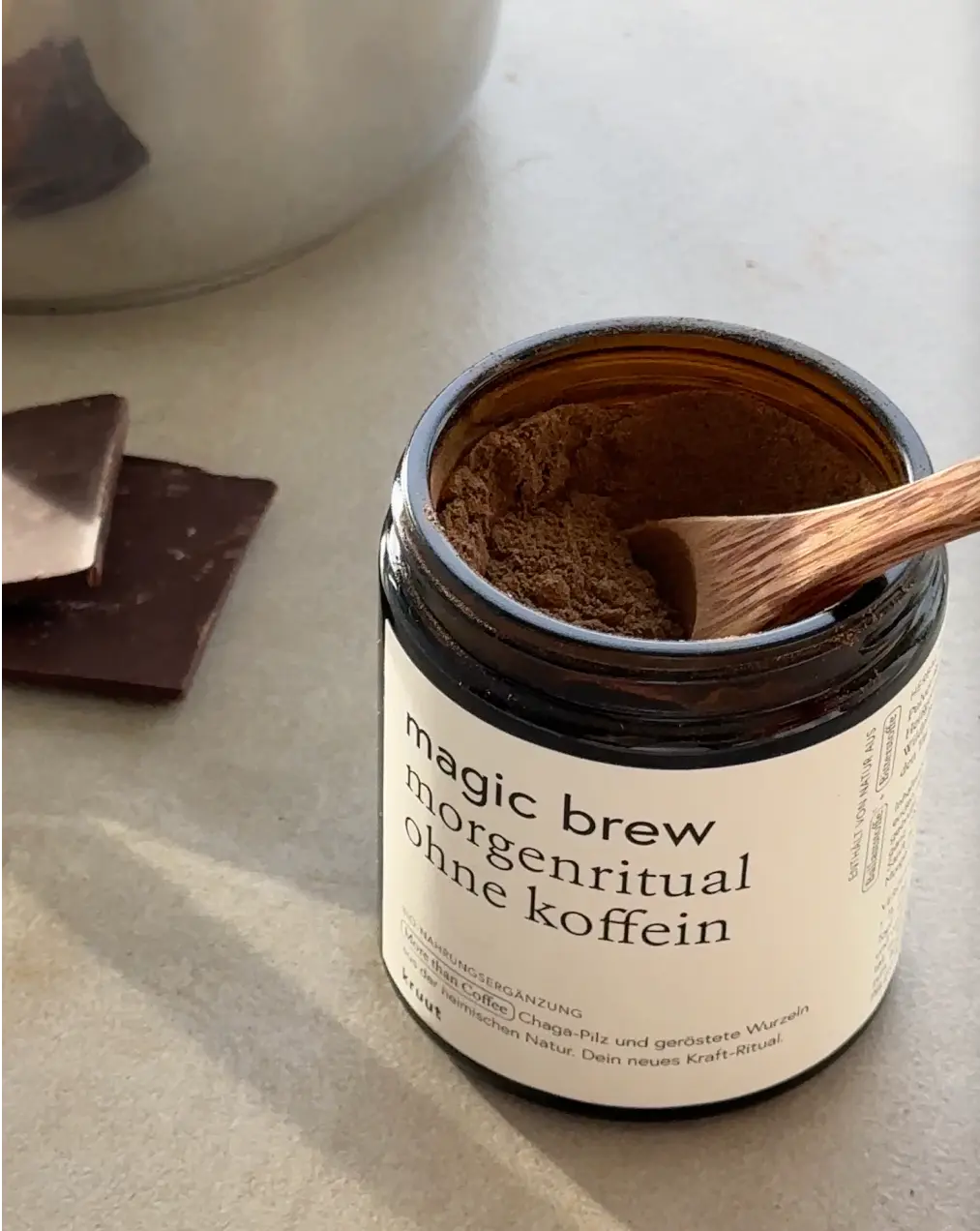 Koche 1 EL getrocknete Chaga-Stücke in 500 ml Wasser 15–20 Minuten bei niedriger Hitze. Anschließend abseihen und genießen. Das Pulver ist ideal als Kaffeealternative, in Smoothies, Gebäck oder als Zutat in Backrezepten. Das Pulver lässt sich auch wunderbar in Joghurt oder Müsli einmischen.