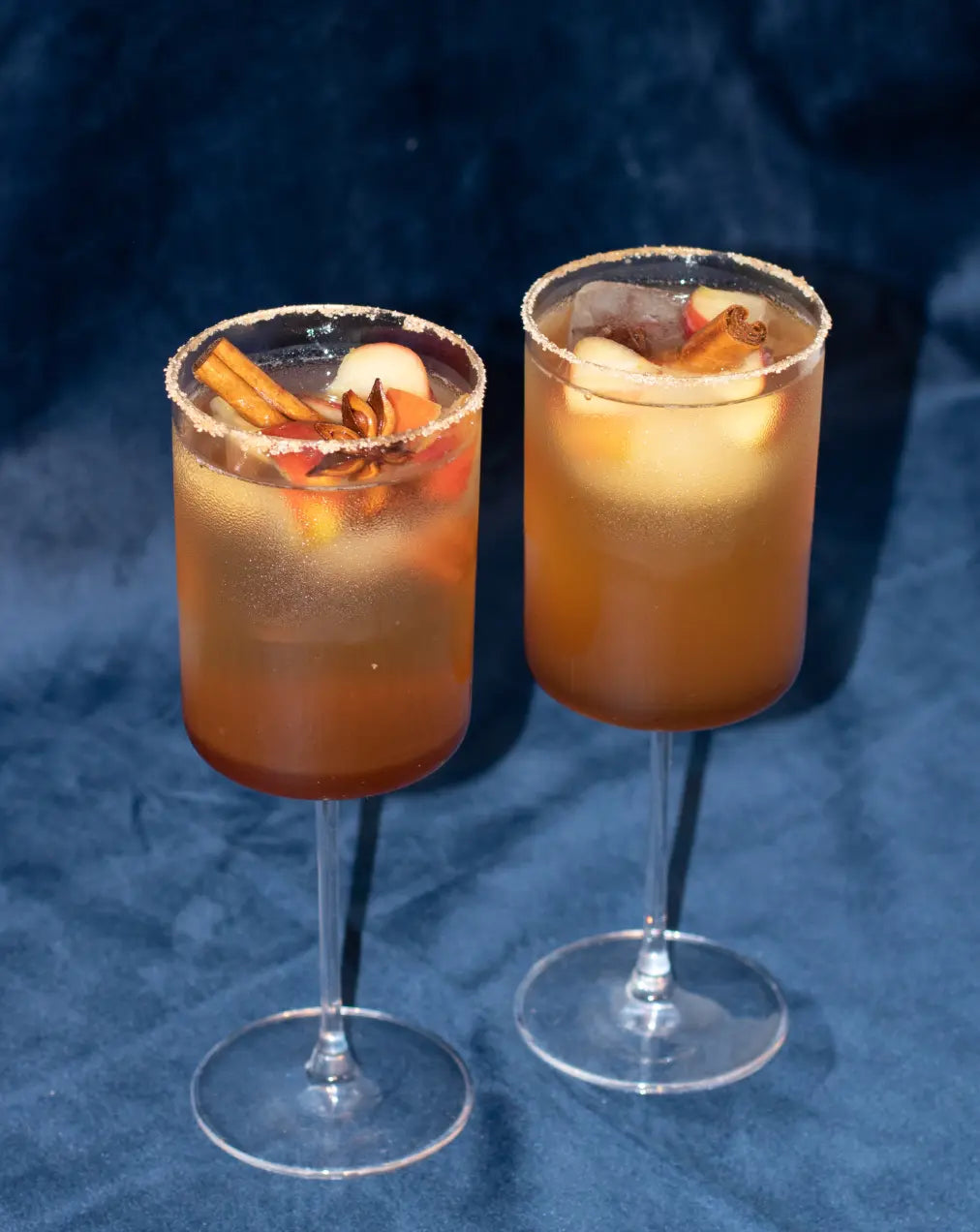Eiswürfel vorbereiten: Dafür den Apfel in kleine Stücke schneiden und in eine Eiswürfelform geben. Zimtstangen und Sternanis darauf verteilen und mit Wasser auffüllen. Über Nacht einfrieren, um wunderschöne dekorative Eiswürfel zu bekommen.