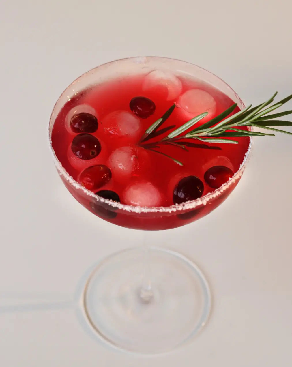 Garnieren: Deinen Drink mit einem frischen Rosmarinzweig und gefrorenen Cranberries garnieren.