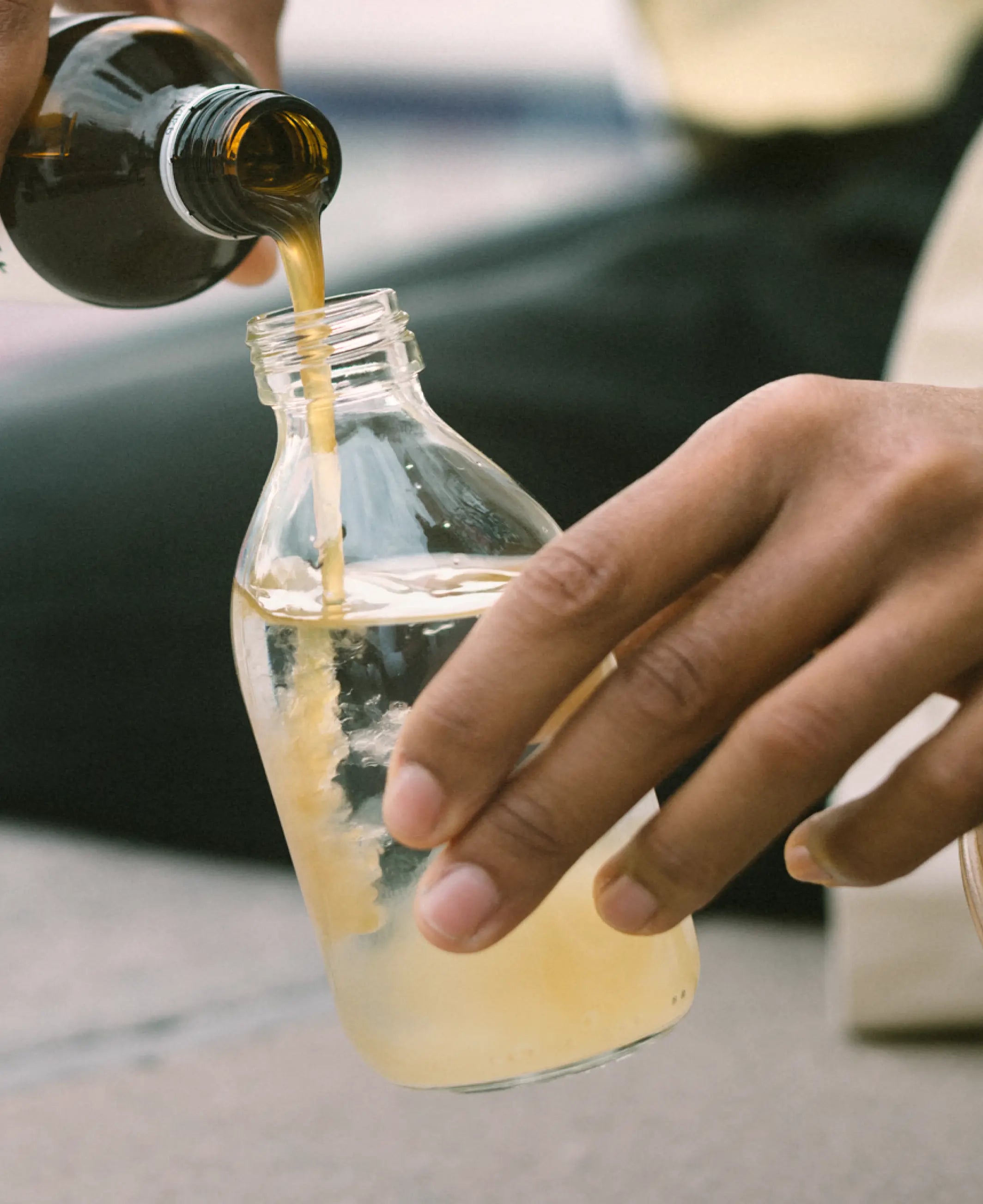 1 EL Bitter mit 200ml Sprudelwasser mischen.